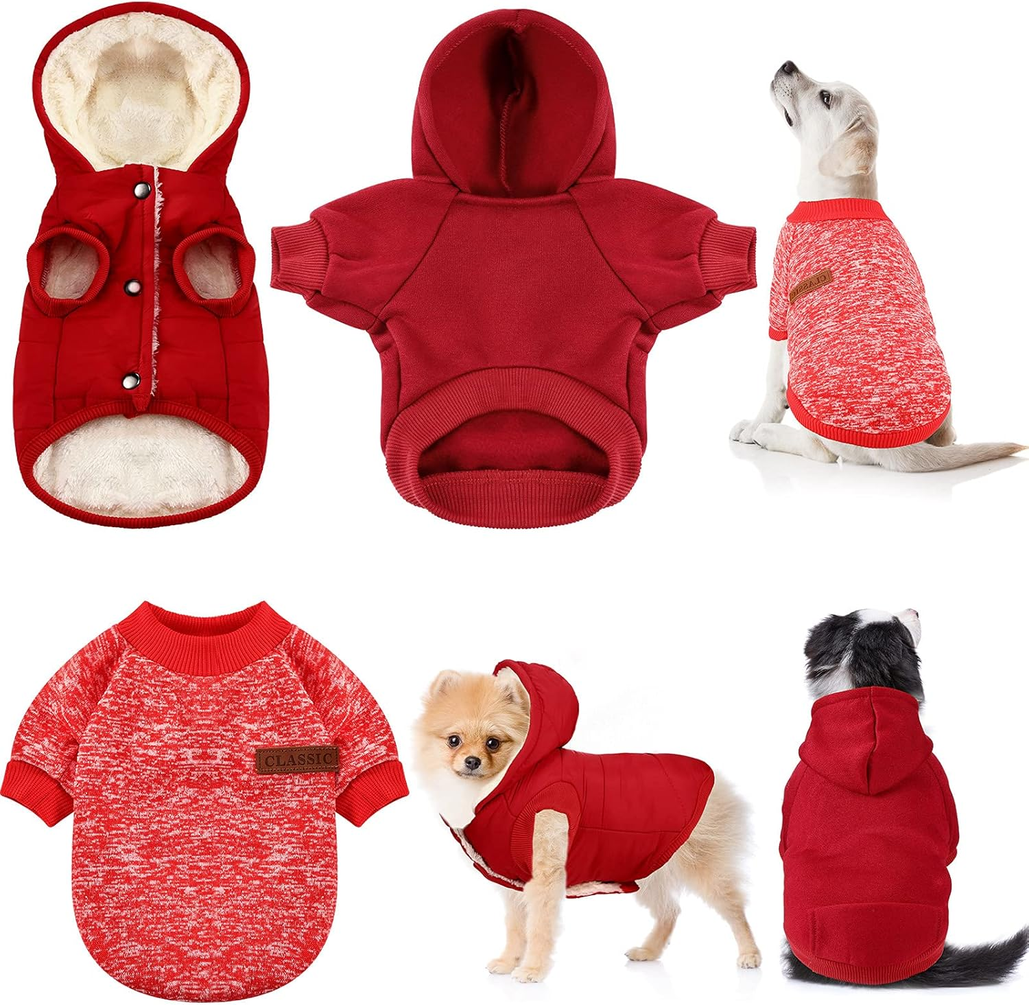- Winter dog costumes: 3 pieces of dog clothes you will get, respectively including 1 piece of dog knitwear, 1 piece of fleece lined warm dog hoodie and 1 piece of hoodie dog coat; 3 Kinds of winter puppy clothes will largely satisfy the requirement for dogs dressing and outfits replacement in cold and chilly weathers
