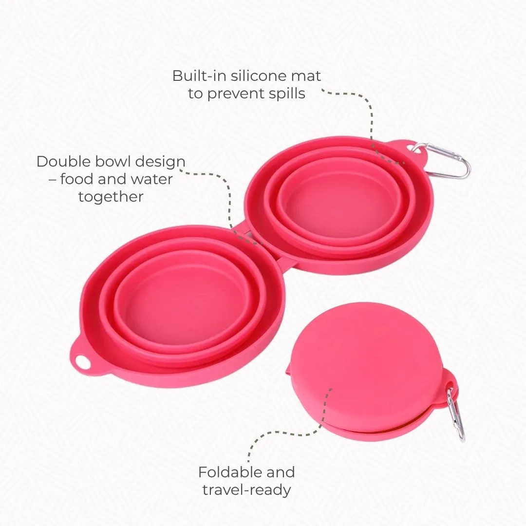 Professional Product Description: Foldable Double Dog Food & Water Bowl