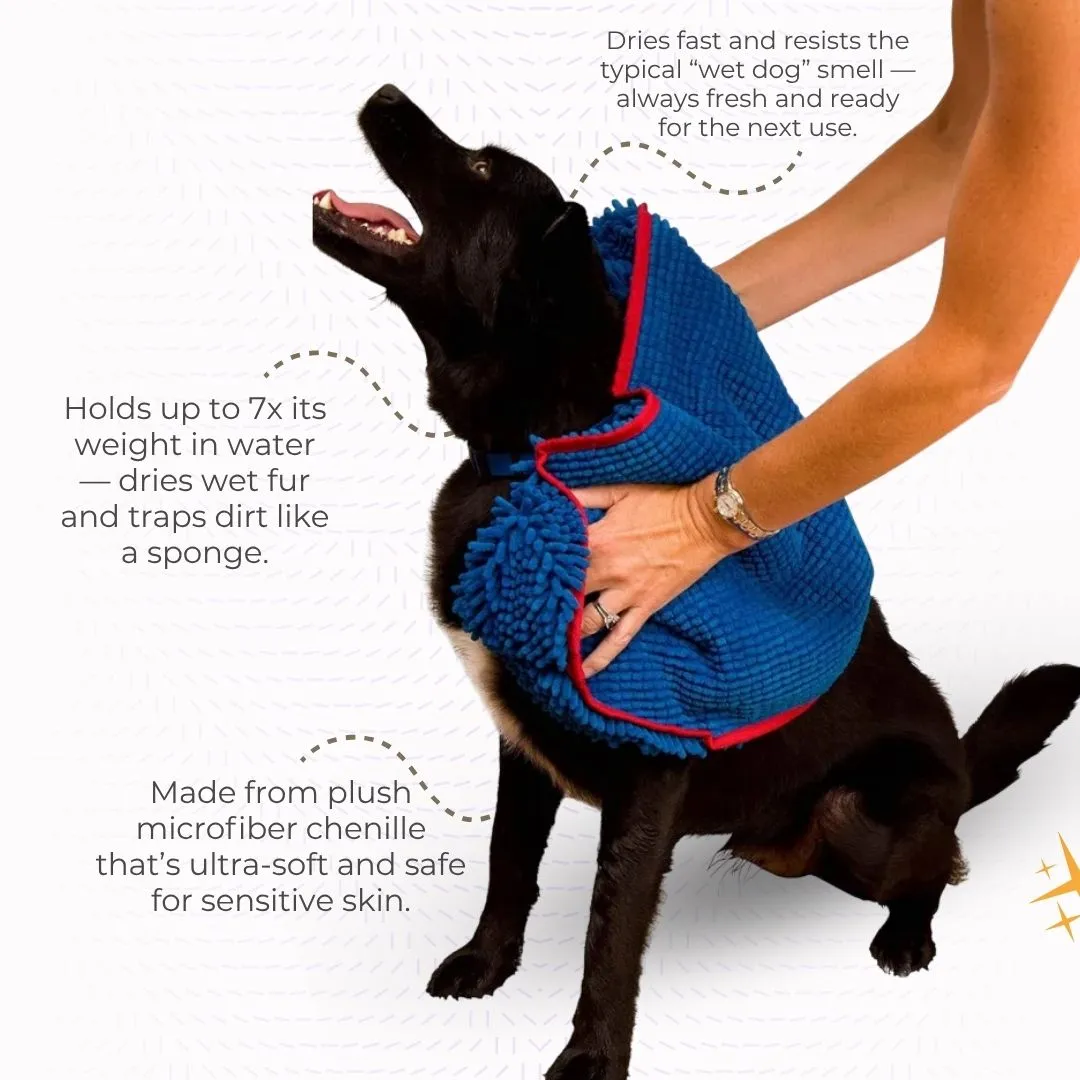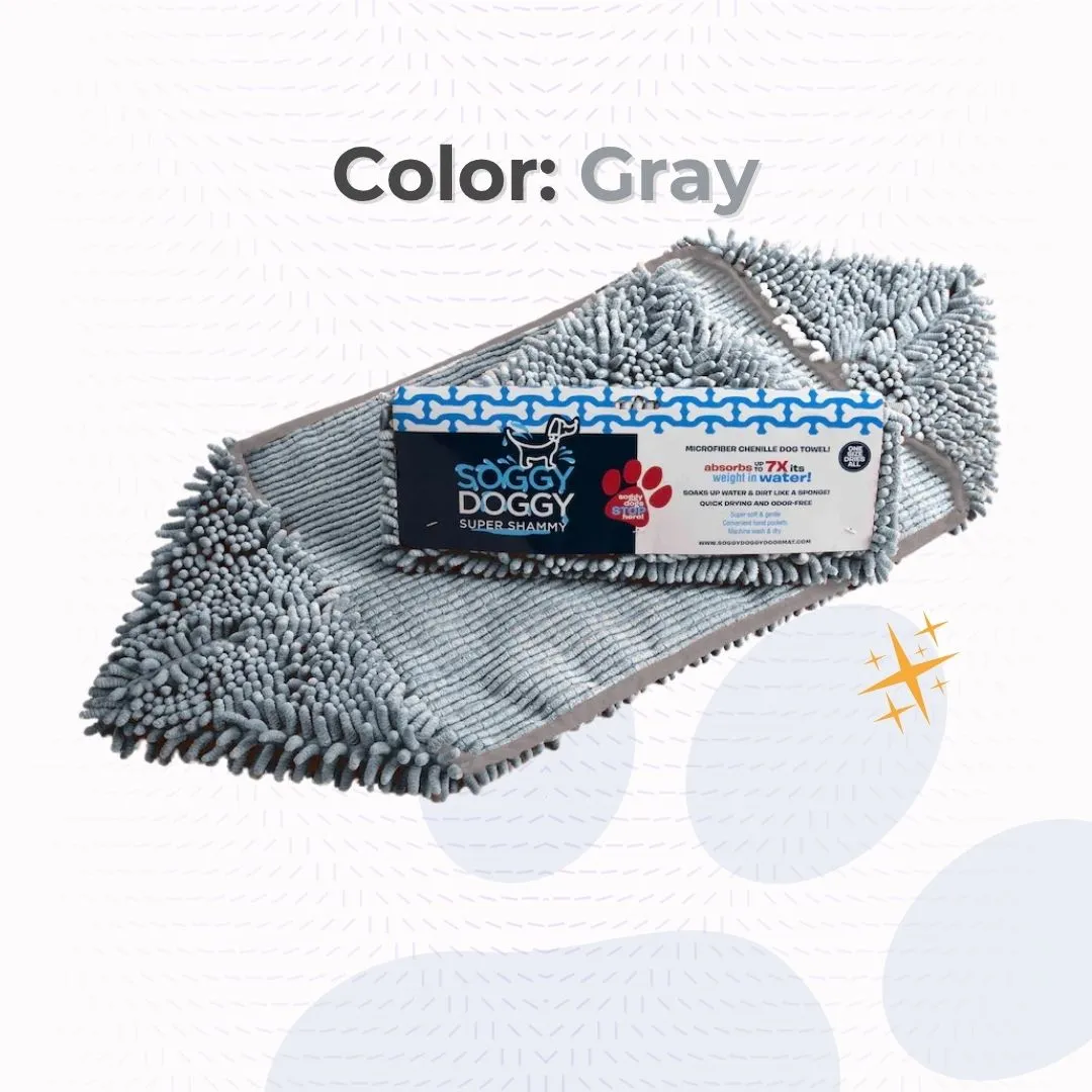Upgrade your dog-drying game with the Soggy Doggy Super Shammy Dog Towelthe ultra-absorbent, fast-drying solution for wet dogs and muddy paws. Made from soft, high-quality microfiber chenille, this towel is designed to absorb moisture and dirt quickly while staying gentle on your pup’s skin.
